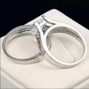NEW 925 STERLING SILVER ENGAGEMENT DIAMOND SET RING, CUTE RING, SHINY RING.