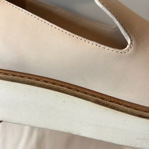 Vince loafers cream color with leather detail and white sole, size 7.