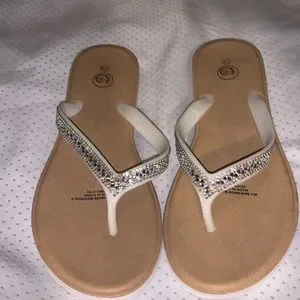 Sparkly white thong sandals size 7/8