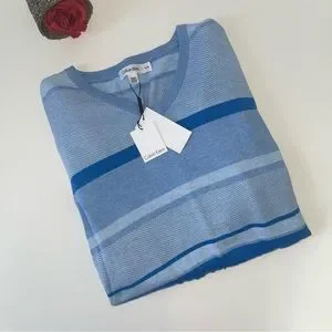 Calvin Klein Mens V-Neck Blue Long Sleeves Sweater- Size XL - New With Tag