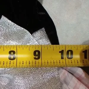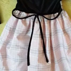 EUC Black Velvet bodice, with pink plaid skirt gathered under a silver belt/bow. Taffeta under slip with a layer of gathered tulle for fullness. Metallic thread in the skirt ties it all together! Measurements as shown.
