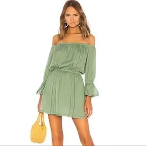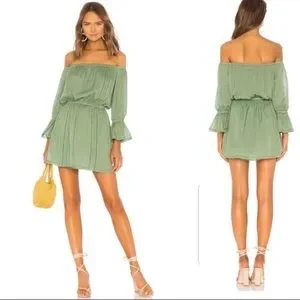 Tularosa Aritzia Luna Green Off The Shoulder Ruffle Mini Dress sz M