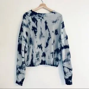 Pistola Eva Tie-Dye Oversized Cropped Slouch Sweater In Black Storm Size Medium