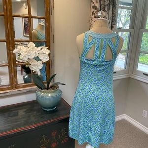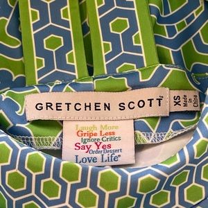 Pristine preowned condition! Gretchen Scott Isosceles Jersey Dress in Rio Gio pattern and color Kelly/Blue. Size XS.