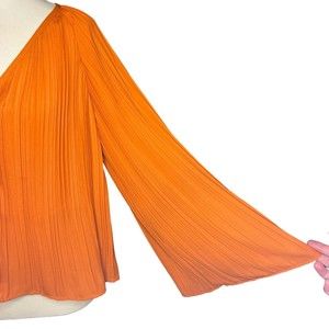 Asos Orange Long-sleeve V-neck Tie-front Blouse Top. Women's Size 6. Excellent preowned condition.