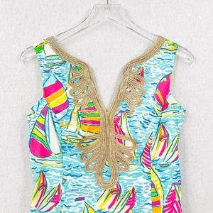 LILLY PULITZER Janice Shift Dress Womens 4 Blue Pink You Gotta Regatta Sailboat