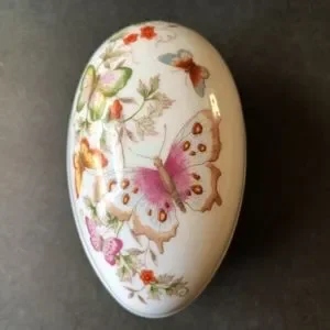 Avon Vintage 1974 Porcelain Butterfly Egg Shape Trinket Dish 22K Gold Trim