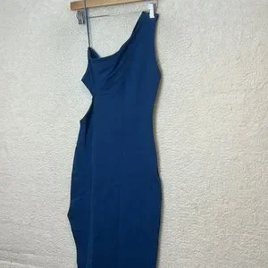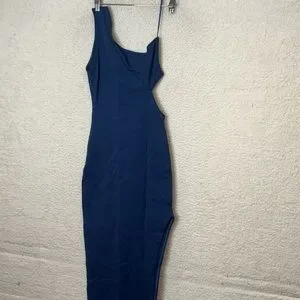 NWT Socialite Womens Deep Blue Bodycon One Shoulder Cut Out Maxi Dress SMALL