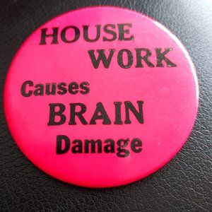 House Work Causes Brain Damage. Hot Pink 70s Vintage Button 2.25 Inches.