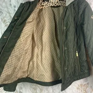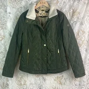 Michael Michael Kors Womens size Medium Olive Green Quilted jacket with a Sherpa collar, perfect for fall or cooler days π₯°ππ