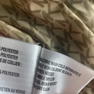 Gold hardware with signature MK logo on left arm sleeve MK logo lining