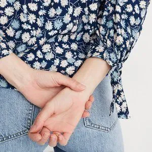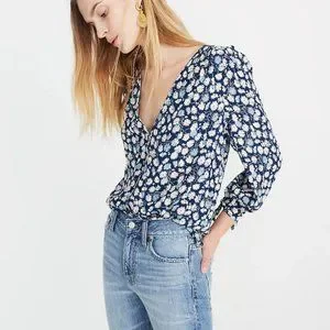 (from Madewell) A simple floral button-down top with pretty ties on the sleeves. Jeans or skirts, this one pairs with everything.