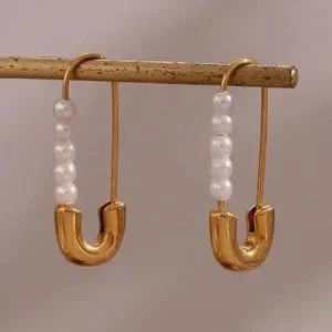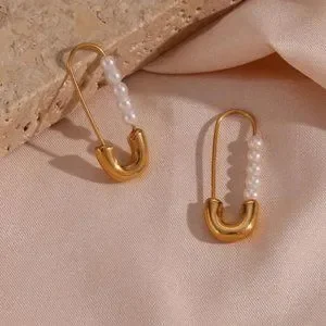 NEW PEARL HOOP 18K GOLD EARNINGS, NICE EARRINGS, CUTE EARRINGS