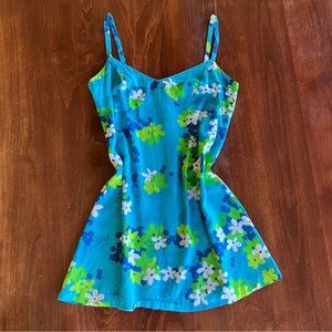 Vintage Y2K style mini dress in bright ocean blue with allover floral print of green, white, & blue flowers. By the 2000s brand Toes on the Nose. In amazing condition- very lightweight, comfortable, & well made! The cutest little summer dress- super flowy & flattering! Size medium, fits S/M best- reference measurements!