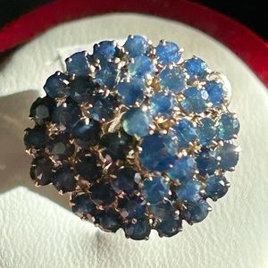 Sold-14K Yellow Gold Spiral Cluster Cocktail Natural Round Shape Blue Sapphire
