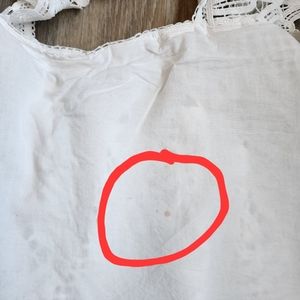 In very good condition Anthropologie eri + ali ruffled lace tank top. there's a couple of light stains from makeup and also in the lining. Please check the photos for more details. Size Small.