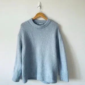 Zara Soft Feel Knit Sweater Crewneck Wool Alpaca Blend Pullover Light Blue Sz M