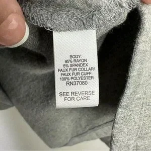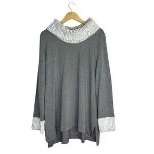 Cato Womens Size XL Gray Long Sleeve Top Off White Faux Fur Cowl Neck & Wrist