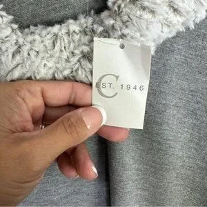 Cato Womens Size XL Gray Long Sleeve Top Off White Faux Fur Cowl Neck & Wrist new with tags, super soft stretchy material. The Cato Women's Long Sleeve Top features a unique faux fur cowl neck and wrist detail.