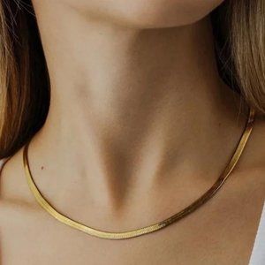 NEW 18K HERRINGBONE GOLD FLAT CHAIN NECKLACE, NICE NECKLACE, CUTE NECKLACE
