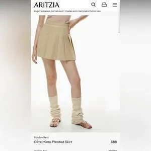 NWT Aritzia Olive Micro Pleated Skirt Brown
