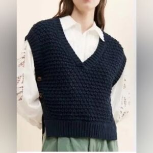 Very soft alpaca wool blend sweater with funnel neck, dropped shoulders and tie waist. In very good used condition