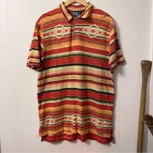 Vintage Polo Ralph Lauren Aztec 100% Cotton Southwestern Polo Shirt