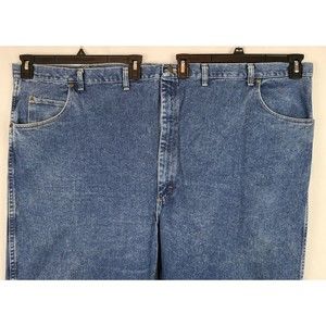 Wrangler Rugged Wear Mens (56 x 30) Big & Tall Blue Jeans Flat Front Medium Wash