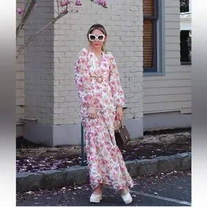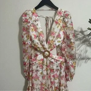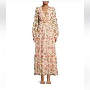 NWT GIANNI BINI Lillian Floral Print Long Sleeve Deep V-Neck Cut-Out Tiered dres