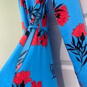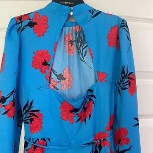 River Island floral print high neck midi dress in blue and red. 10 UK/4 or 6 US