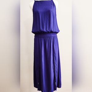 LABEL & LOVE Women Midi Dress Size M Blue Sleeveless Round Neck Button Backless