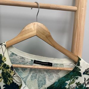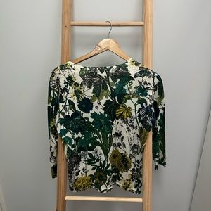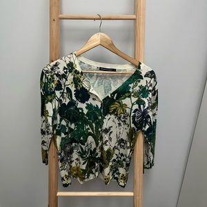 Sportscraft Cardigan Size M 12 Cotton Silk Blend Knit Green Cream Fern Floral