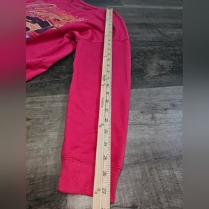 GM Official Licensed Product, Women's, Size Large Lightweight Sweatshirt. Very lightweight and soft. The color is red. Lighting makes it look pink, but it is red. There is minor pillowing. Measurements are included in the pictures. Good condition, no holes or stains.