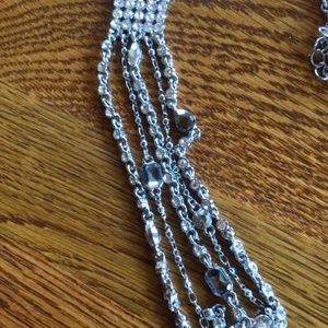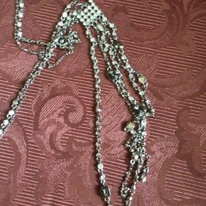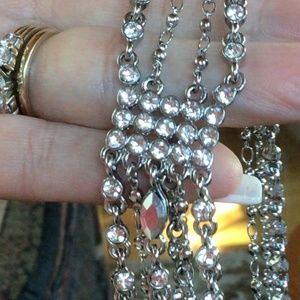 WHBM Silver and Rhinestone Tassel Long Tassel Necklace