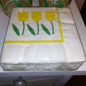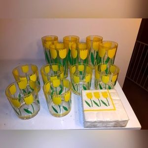 set of 12 melamine glasses with matching napkins. Six 8 ounce and six 16 ounce. beautiful design. good condition