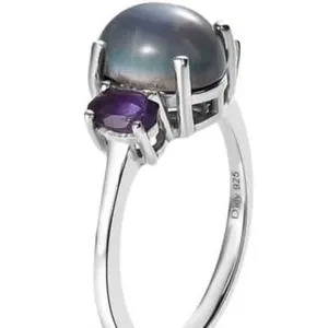 Aurora Moonstone & Amethyst Ring Platinum over Sterling Silver Sz 8! 💫