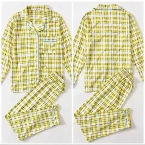 New Yellow Plaid Long Pajama Set