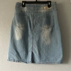 Be Girl light Wash midi denim skirt. Zip up and button waist. Slit in back. Functional pockets. Worn once. Gently used.