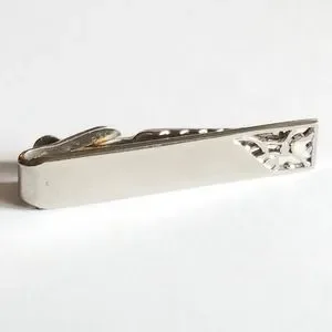 Relisted - vintage tie clip Silver tone metal tie bar mens jewelry cutout