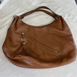 Michael Kors Brown Large Leather Shoulder Bag. Good used Condition. Slight signs of wear on handles and the MK tassel ring. Well made good looking bag.