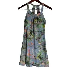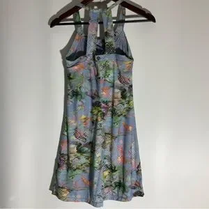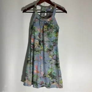 Prana Cantine Dress Blue Graceful Stretch Halter Double Strap back Round Neck XS