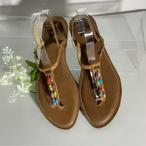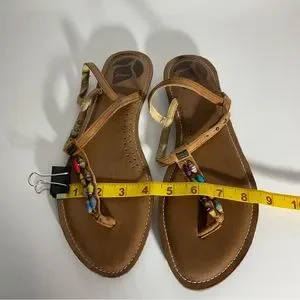 Reef Multi-Color Jewel Beads Between Toe Brown Ankle Strap Sandals Snap Closure. Sandals have no size tag so please see measurements. I wear a size 9 & they fit with some room so I suggest they would fit a women’s 9-9.5. Sandals are pre-owned & appear to be without flaws. Please view all pictures for best item description & condition. Bundles do receive the best deal & offers are certainly welcome.