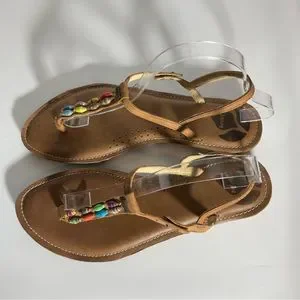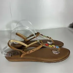 Reef Multi-Color Jewel Beads Between Toe Brown Ankle Strap Sandals Snap Closure.