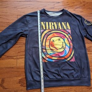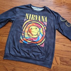 Nirvana long sleeve shirt - large - gray - yellow smiley down left sleeve