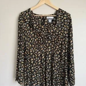 Vintage Diana Marco Fall Floral Long Sleeves Dress Size 14