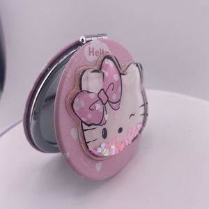 Hello Kitty Pink Bow Compact Mirror glitter rainfall- New