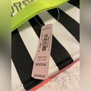 NWT Victoria’s Secret travel case, coral canvas, black and white zip top with neon green handle. Zippered compartment inside, as well as pocket. Tags attached, never used, comes in plastic bag it was shipped in. Retails for $70. Great gift. Same-day shipping, smoke- free home .