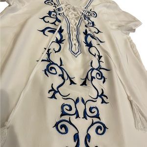 Lulu’s Down in Kokomo Ivory Floral Embroidered Shift Lace-up Dress, Size M, EUC