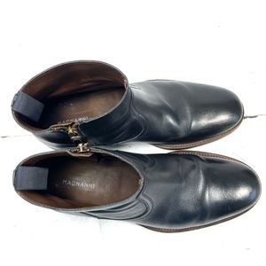 Magnanni Shoes Men’s 10M Black Chelsea Boots Leather Side Zip . Condition is pre-owned. In good condition greatly worn but gentle shows signs of creasing and wear on heels. Please see pictures for more details