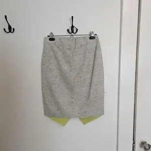 Cute and comfortable pencil skirt in soft stretch fabric. Light sage green color with neon green accent inside. Length approx. 21 inches width 14 inches.